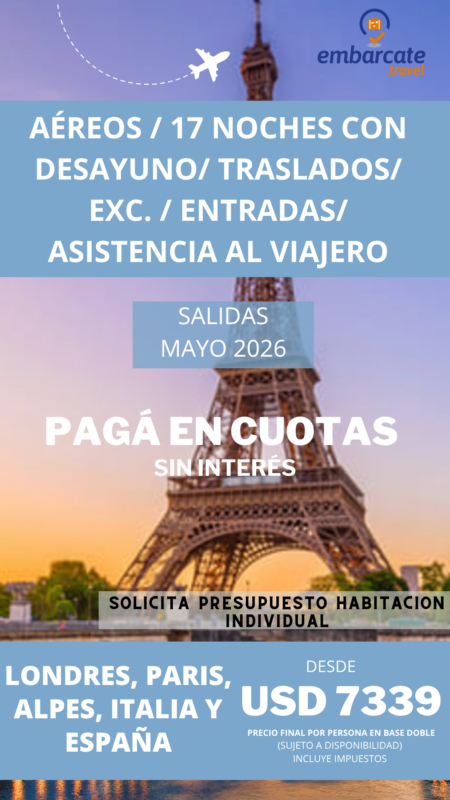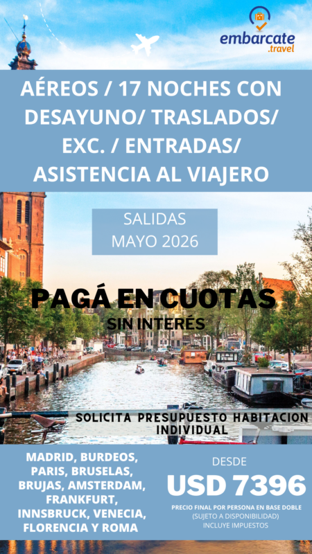 Madrid, Barcelona, Costa Azul, Venecia, Florencia, Roma, Turin, Paris y Burdeo – 17 Noches- Mayo 2026 MÁS INFO