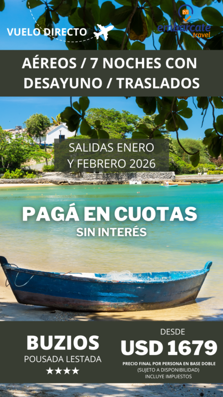 Buzios – Pousada Lestada – 7 noches – Enero y Febrero 2026