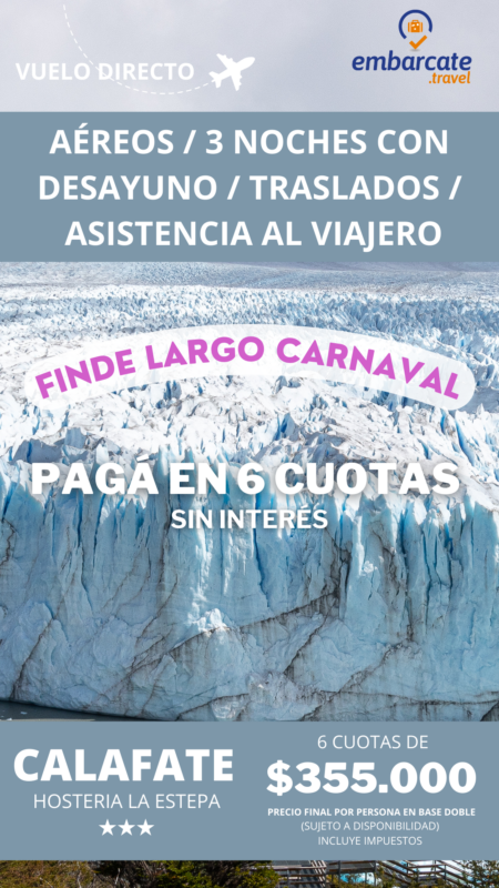 Calafate – Hosteria la Estepa – 3 noches – Finde largo de Carnaval