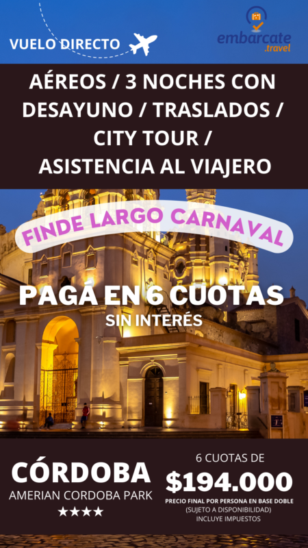 Córdoba – Amerian Park Hotel – 3 noches – Finde largo de Carnaval