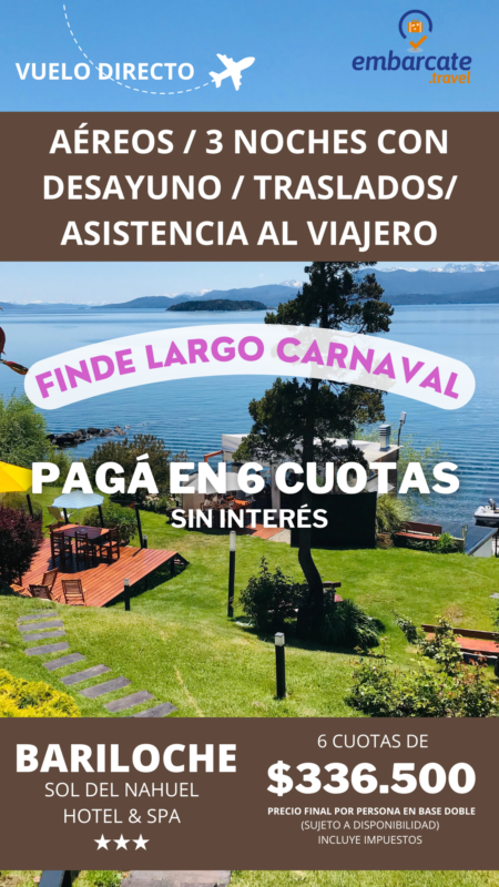 Bariloche – Hotel Sol del Nahuel & Spa – 3 noches – Finde largo de Carnaval