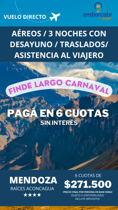 Mendoza – Hotel Raices de Aconcagua- 3 noches – Finde largo de Carnaval