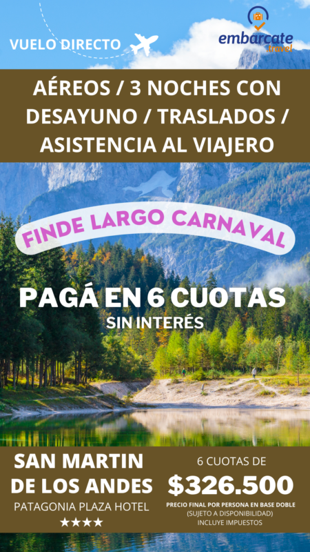 San Martin De Los Andes – Hotel Plaza Patagonia – 3 noches – Finde largo de Carnaval