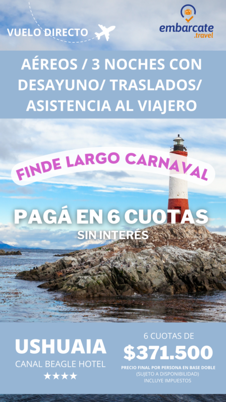 Ushuaia – Canal Beagle Hotel – 3 Noches – Finde largo de Carnaval