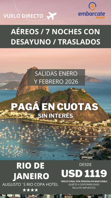 Rio de Janeiro – Augusto’s Copacabana – 7 noches – Enero y Febrero 2026