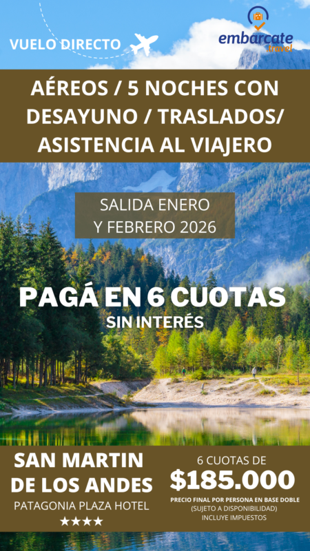 San Martin De Los Andes – Hotel Plaza Patagonia – 5 noches – Enero y Febrero 2026