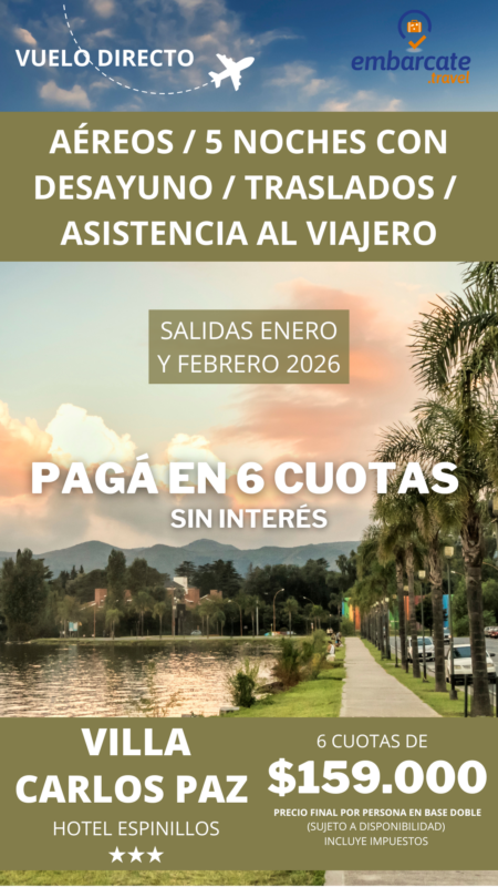 Villa Carlos Paz – Hotel Espinillos- 5 noches -Enero y Febrero 2026