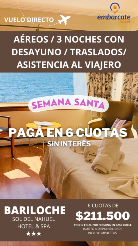 Bariloche – Hotel Sol del Nahuel & Spa – 3 noches – Finde largo Semana Santa
