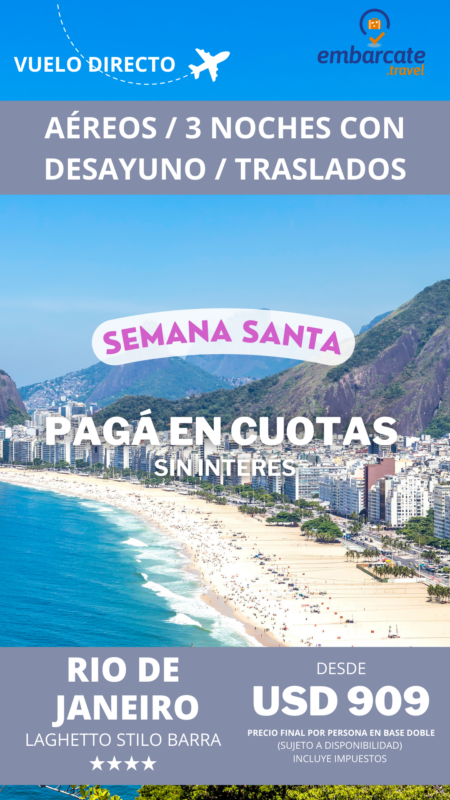 Rio de Janeiro – Laghetto Stilo – 3 noches – Finde largo de Semana Santa