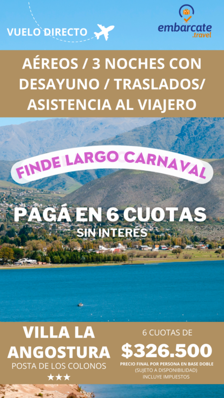 Villa La Angostura -Posta de los Colonos – 3 noches – Finde largo de Carnaval