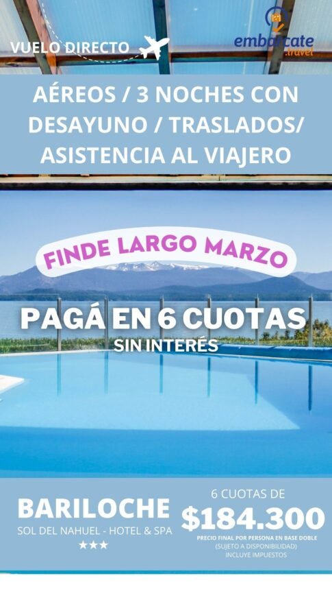 Bariloche – Hotel Sol del Nahuel & Spa – 3 noches -Abril 2026