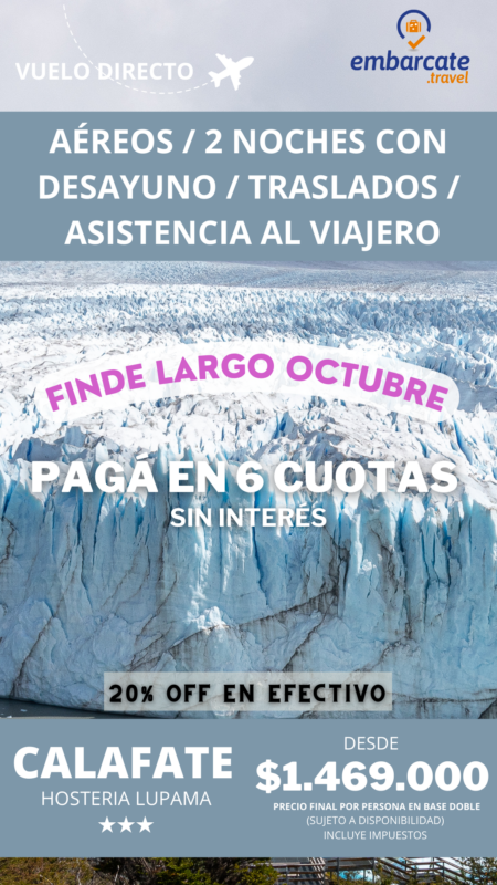 Nos localizamos a 20 Km del Aeropuerto Internacional y 80 Km del Glaciar Perito Moreno – Parque Nacional Los Glaciares