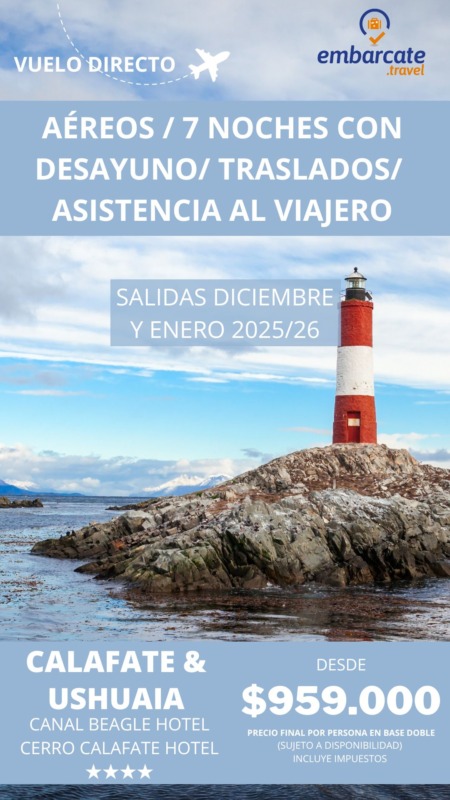 Alojamiento: 7 noches en Canal Beagle y Cerro Calafate Hotel (Base doble) con desayuno