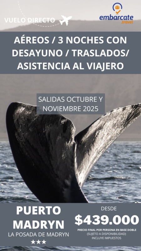 Alojamiento: 3 noches en La Posada de Madryn (Base doble)
