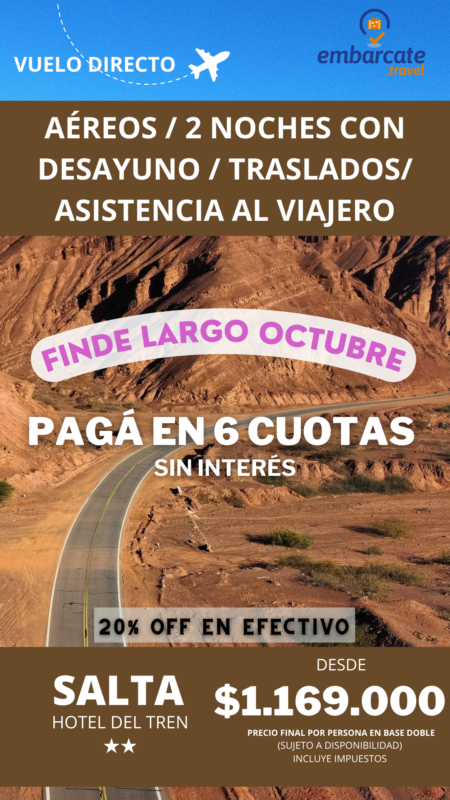 Salta – Hotel Del Tren – 2 noches-Finde largo de Octubre 2025