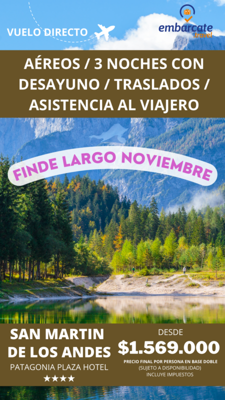 San Martin De Los Andes – Hotel Plaza Patagonia – 3 noches – Finde largo Noviembre