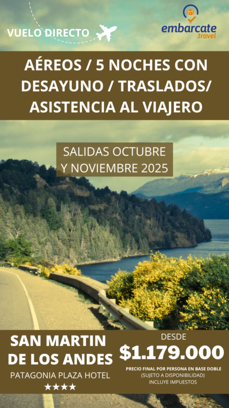 San Martin De Los Andes – Hotel Plaza Patagonia – 5 noches – Octubre y Noviembre 2025